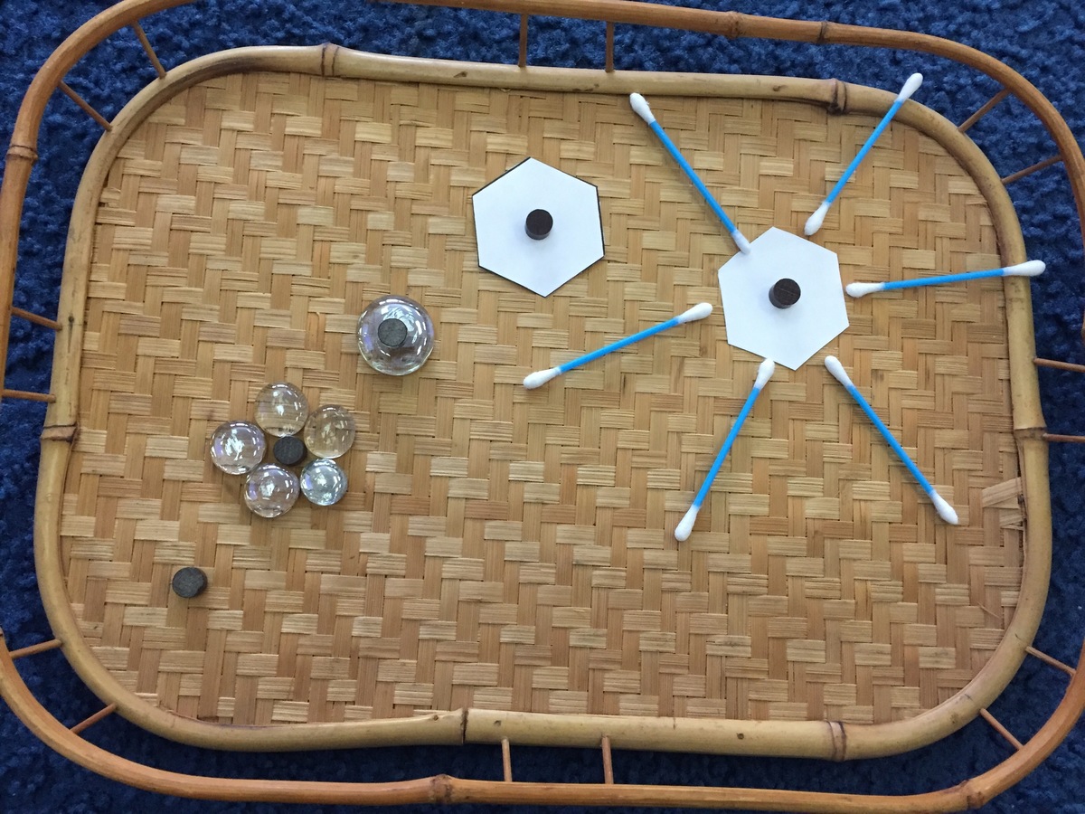 So, after reading about it in our books, I created a visual using loose parts, inspired by the diagram in The Secret Life of a Snowflake book.