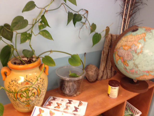I am grateful to Maripat Murphy, one of the teachers at this school, who gave me permission to share photos from her “Waterfall Room” (all the classrooms have nature-themed names).