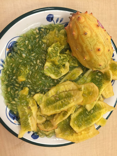 It’s called Kiwano or Horned Melon and it tastes a bit like a cucumber. Only a handful of kids were “open” to it!